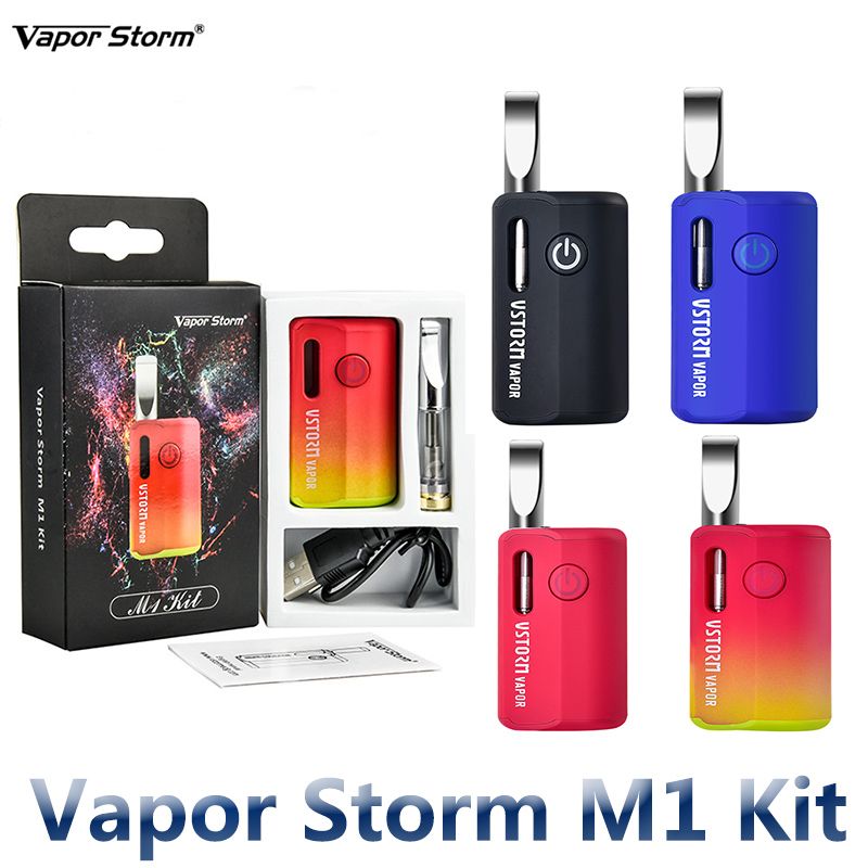 Original Vapor Storm M1 Kit 800mah Vv Box Mod 0 5ml Thick Oil Cartridge Atomizer For 510 Thread Vape Box Mod E Cigarette Kits V2 Cigs Ecig From
