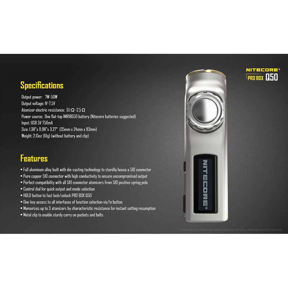 Nitecore Pro Box Q50 Mods Vape 50w Silver
