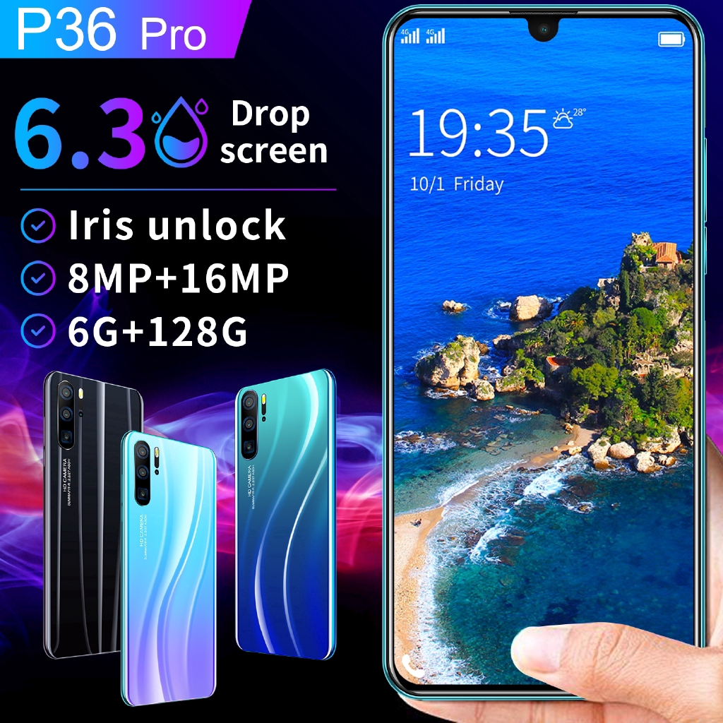 P36 Smartphone 4g Water Drop Screen Hd 6 3inci 6 128gb Memory Three In One Kamera Belakang