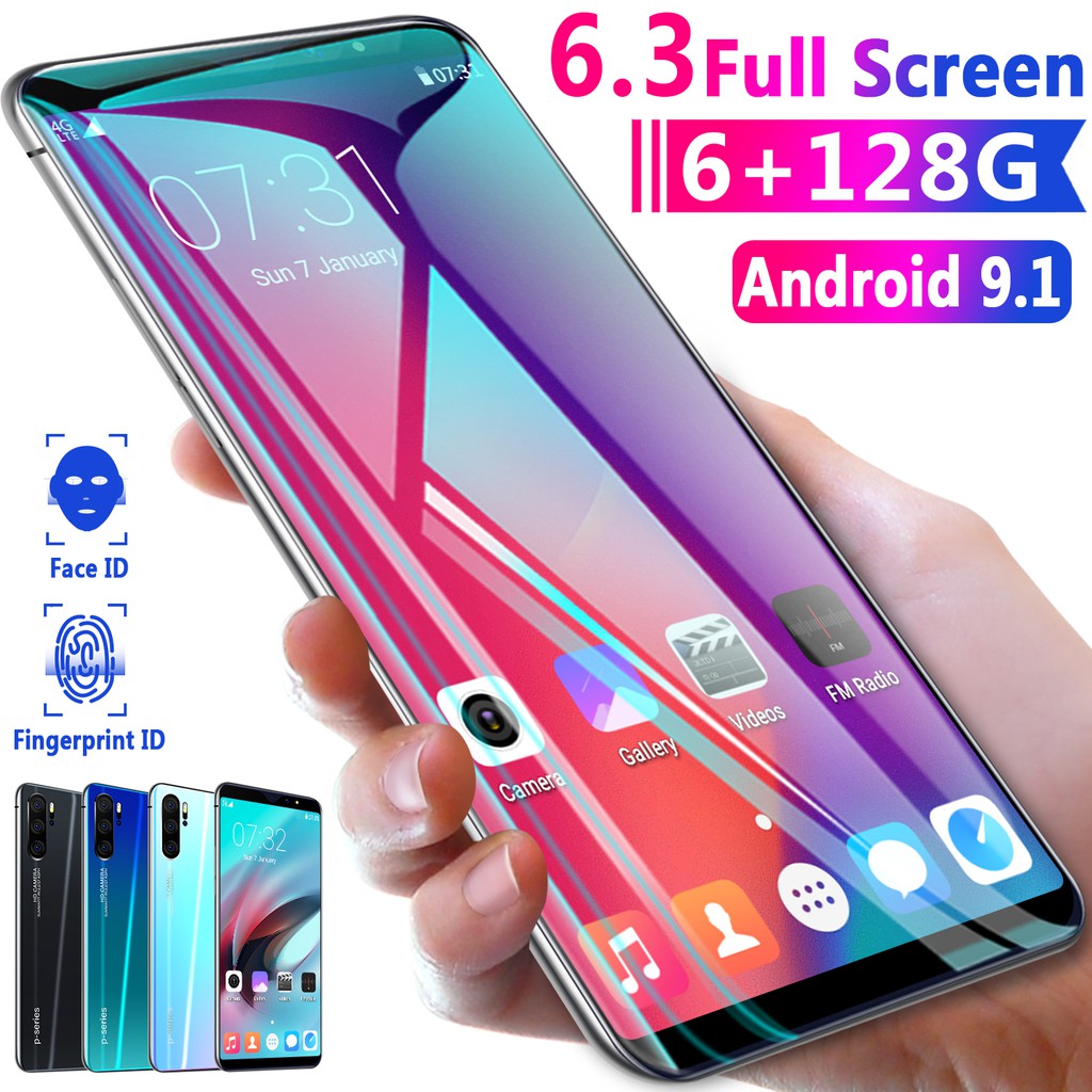P31 Pro Android 9 1 6g 128g Full Screen Ultra Thin Smart 4g Mobile 6 3 Inch Phone Smartphone Face Fingerprint Unlock Cellphone 8