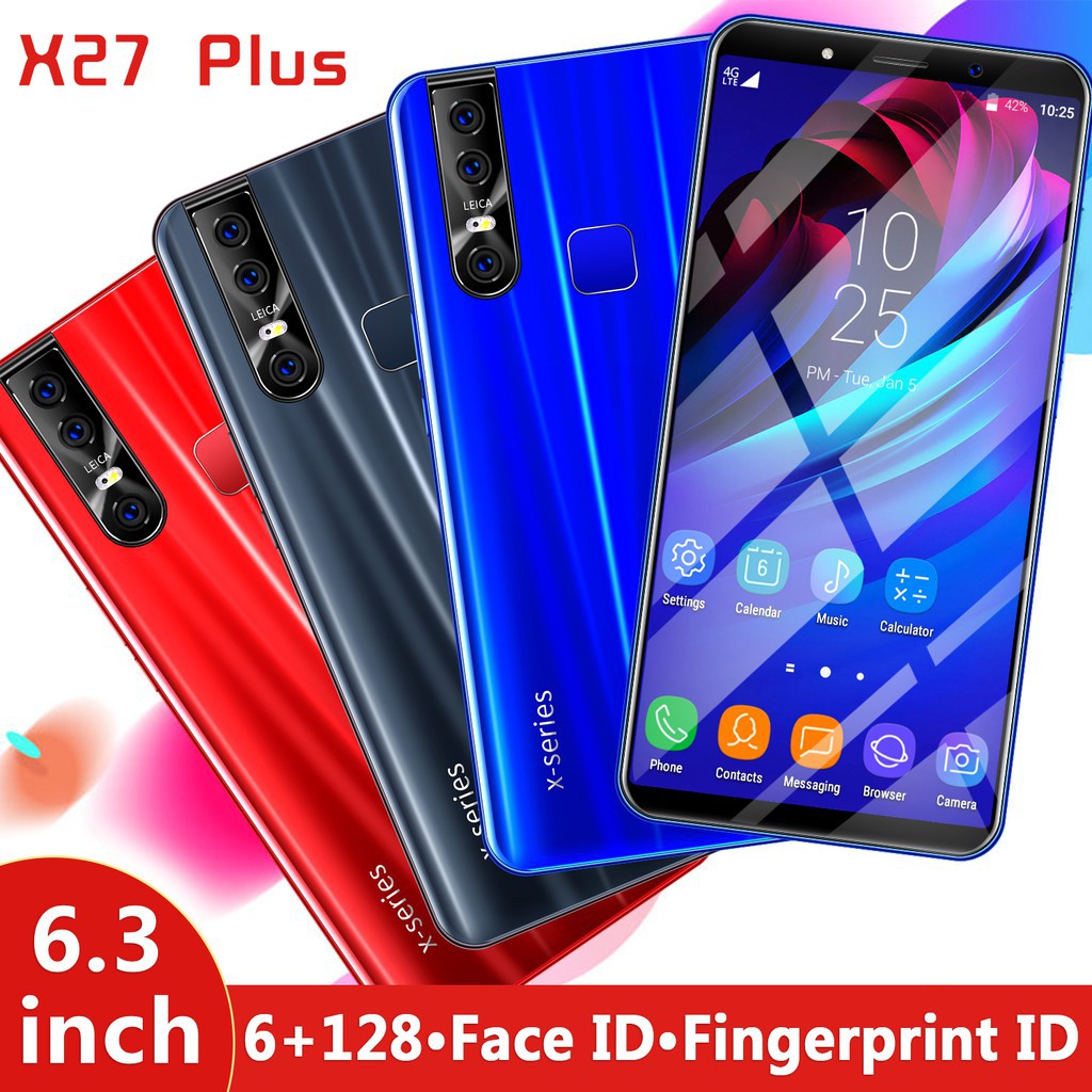 Free Gift Free Shipping X27 Plus Red Blue Black 6 3 Hd Screen Face Fingerprint Recognition 6g 128g 8mp 16mp Android 9 1 Mobile Smartphone