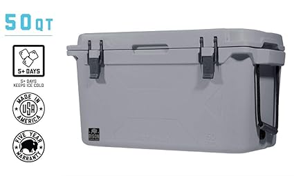 Bison Coolers Medium 50 Quart Rotomolded Cooler Box For Beer Liquid Or Lunch Long Lasting Ice Chest With Hard Shell Lid And Liner Includes 5